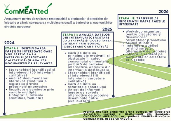 Titlul proiectului: Angajament pentru dezvoltarea responsabilă a produselor și practicilor de înlocuire a cărnii: compararea multidimensională a barierelor și oportunităților din țările europene (Acronim: ComMEATted) (Committed to the Responsible development of meat replacement products and practices: comparing Multidimensional barriers and potentials in European countries)