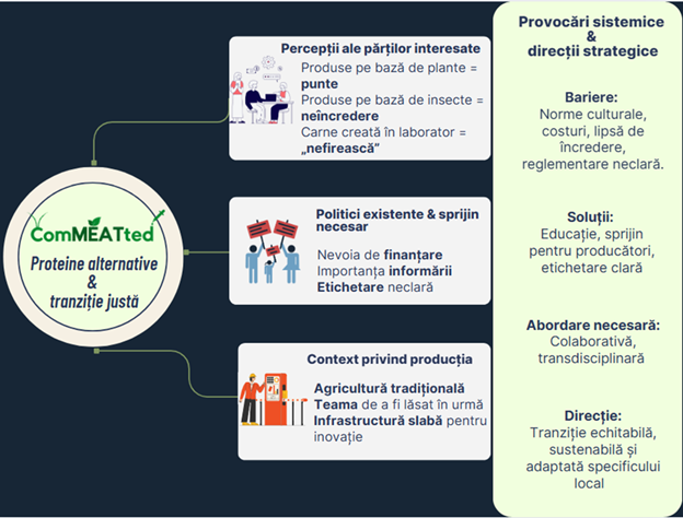 În cadrul proiectului ComMEATted (etapa a II-a), activitățile desfășurate în România au avut ca scop înțelegerea percepțiilor, barierelor și oportunităților legate de tranziția justă către produse alternative la carne. Printre demersurile realizate s-a numărat colectarea opiniilor unor actori relevanți, de la specialiști în domeniu, până la actori instituționali și politicieni.