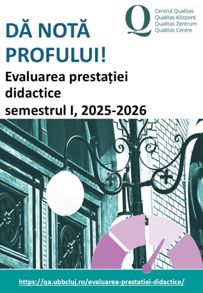 Evaluarea activității de predare de către studenți, pentru semestrul I al anului universitar curent, se desfășoară în perioada 8 decembrie 2025 – 11 ianuarie 2026 pentru învățământul cu frecvență.
